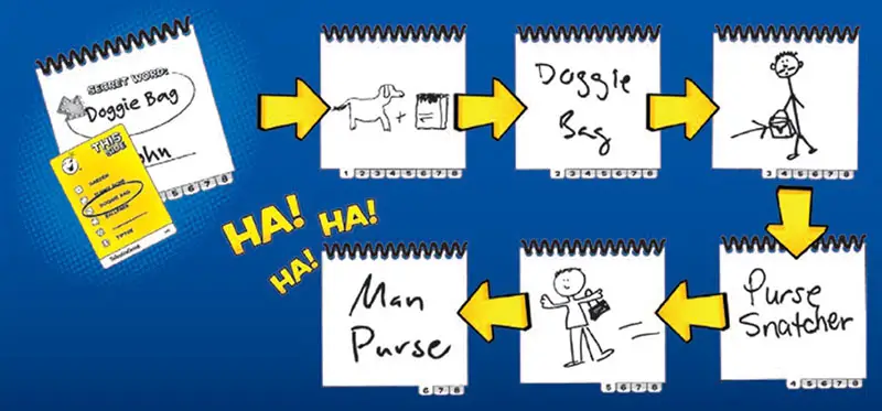 Telestrations is the fast-paced guessing game where players pass around their drawings and the next player has to try and draw what they think it is. The result is a hilarious game of telephone where players end up drawing something that isn’t even close to the original prompt.